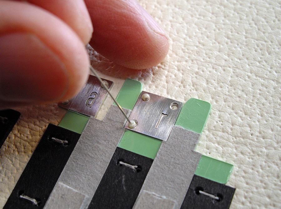 The beads were sewn with grey silk thread.
