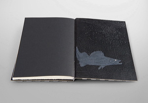 ![]() Recessed stylized 'bird' and 'fish' onlays of dark grey goatskin. |